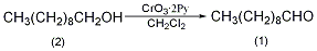 In a 3L reaction bottle equipped with a stirrer, thermometer, and reflux condenser, add 94.9g (1.2mol) of pyridine and 1500mL of methylene chloride, cool to 5°C in an ice bath while stirring, and add chromium trioxide in one go. 60g (0.6mol), stir and react for 5 minutes. Slowly rise to 20°C within 1 hour. Quickly add dropwise a solution of 15.8g (0.1mol) 1-decanol (2) and 400mL methylene chloride. After the addition is complete, continue stirring the reaction for 15 minutes. The reaction solution was decanted, and the tar-like black precipitate was extracted three times with diethyl ether. The layers were combined, washed successively with 1000 mL of cold 5% sodium bicarbonate solution x 3 and water, and dried over anhydrous magnesium sulfate. The solvent is evaporated and fractionated under reduced pressure. The fractions at 96-98°C/2.1kPa are collected to obtain 9.8-10.2g of 1-decanal (1) with a yield of 63%-66%. [1]