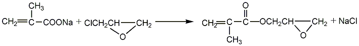 (2) GMA Synthesis In a three-necked flask equipped with a stirrer, water separator and thermometer, add 40g of dry methacrylic acid sodium salt, 0.2g of polymerization inhibitor p-hydroxyanisole, and 1.2g of catalyst (several quaternary ammonium salts, respectively). Generally use triethylbenzyl ammonium chloride) and 250g epichlorohydrin, stir the reaction, control the reaction temperature at 105-110°C, and the reaction time is 3.0h. After the reaction is completed, filter to remove NaCL, and the resulting filtrate is distilled under reduced pressure under the conditions of 80-80°C/6.7-80.KPa to distill out epichlorohydrin; and then distilled out under reduced pressure under the conditions of 100-105°C/1.1-1.6KPa ProductGMA.