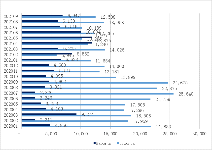 From the point of view of the main export destinations,2021year9Month South Korea, Italy , Malaysia, India and Vietnam are other glycols in mainland China (includingBDO), the top five export destinations (by export weight), The export volume accounts for a total of 72%. Mainland China9The weight of exports to South Korea, Italy, Malaysia, India and Vietnam increased month-on-month respectively34%, ring ratio Growth1% , chain growth24%, month-on-month growth142% , chain growth172%; the total weight of mainland China’s exports to the top five export destinations increased month-on-month44%.