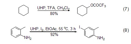 Recent literature reports that UHP can also Achieve oxidation of inactive C-H bonds to form hydroxyl or ester groups (Formula 7)[9]; UHP combined with I2 can conveniently and effectively realize the oxidation of aryl groups Iodination (Formula 8)[10].