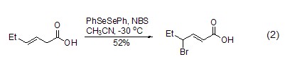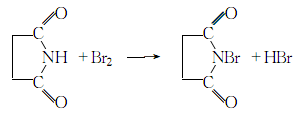 Unsaturated carboxylic acids, aldehydes, esters and lactone compounds can also be brominated using NBS. During the bromination process of unsaturated carboxylic acids, the unsaturated bonds may migrate to generate α,β-unsaturated carboxylic acid (formula 2)[2].