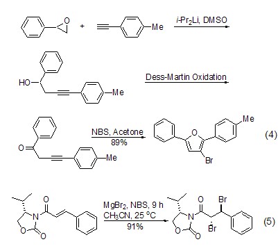 Reaction with vinyl or alkynyl compounds In the presence of organometallic compounds, NBS can convert alkyne and other compounds into the corresponding bromide (Formula 4 )[6].