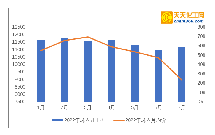 It is also new production capacity, 2021 In the middle of the year, the second phase of Hishell, Sinochem Quanzhou, and Fuqiang New Materials have been put into production one after another, Cyproterene broke the 20,000 yuan/ton mark. The main reason is that the domestic demand continues to improve, peripheral Saudi Arabia, new shell maintenance, coupled with the force majeure of the polyether cyclopropylene plant in the United States, the export volume of polyether, which accounts for 78% of the downstream consumption of cyclopropane, has increased significantly, with a month-on-month increase of 47.5% to 62.7 tons. So far in 2022, the second phase of Zhenhai, Jiangsu Yida, and Bohai Chemical have been put into production smoothly, and China’s cyclopropane production capacity has reached 4.947 million tons, a year-on-year increase of 15.1%. The price of cyclopropane fell from 12,250 yuan/ton at the beginning of the year to 7,900 yuan/ton, a drop of 35.5%.