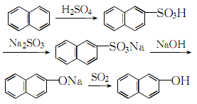 . The sulfur dioxide gas generated during the reaction is promptly removed with steam, and the neutralized product is cooled to 35-40°C for cooling and crystallization. The crystals obtained by suction filtration are washed with 10% salt water, dried, and then added to molten 98 at 300-310°C. % sodium hydroxide, stir and maintain 320~330℃ to melt the sodium 2-naphthalenesulfonate alkali into sodium 2-naphthol, and then dilute the alkali with hot water The melt is then passed through the sulfur dioxide generated by the above-mentioned neutralization reaction, and the acidification reaction is carried out at 70 to 80°C until phenolphthalein becomes colorless. The acidified product is allowed to stand for stratification, and the upper liquid obtained is heated to boiling, left to stand, and the water layer is separated. The crude 2-naphthol obtained is dehydrated by heating and then distilled under reduced pressure to obtain the pure product.