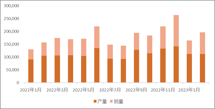 Figure 1 January 2022-February 2023 Automobile Production and Sales in Turkey (Unit: Unit)