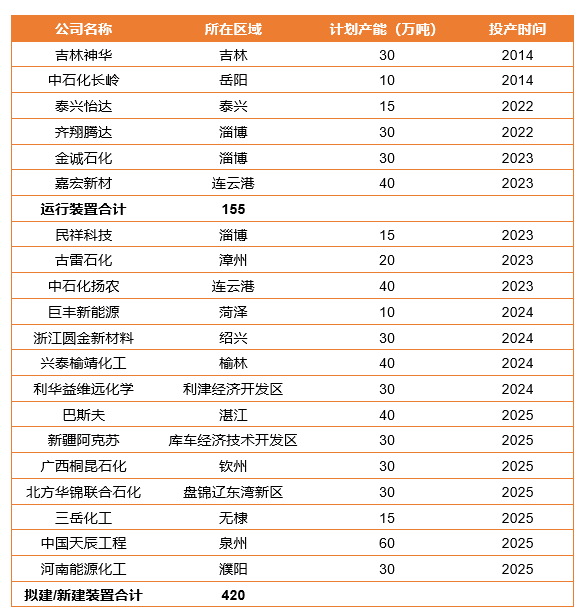 The second is to increase safety production supervision,HPPOThe barriers to entry for new projects of propylene oxide by process method have been raised, etc. According to the statistics of Tiantian Chemical Network, currently operatingHPPO crafts include2014Jilin Shenhua and Sinopec Changling, which were put into production in 2018,2022year Taixing Yida and Qixiang Tengda and 2023The total annual production capacity of Jincheng Petrochemical and Jiahong New Materials put into production in 2019155155 tons, and New and proposed projects in the future will reach 420 tons.