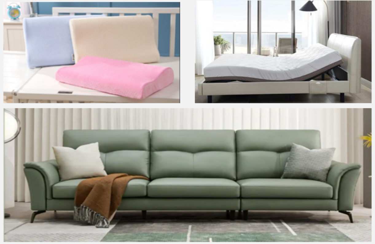Taking mattresses as an example, if divided according to the main material, the mattress can Divided into spring mattresses, palm mattresses, sponge mattresses, latex mattresses, the most important of which is sponge. Sponge generally refers to polyurethane sponge, because of its porous honeycomb structure, it has low density, good elastic recovery, sound absorption, breathability, heat preservation and other properties. And the hardness and resilience can be adjusted through formula and process to meet various product needs. The foreign body sensation of the sponge mattress is relatively low, and it has unique stress relief and shock absorption properties, and the time to fall asleep can be reduced compared with other mattresses60%, it is easier to maintain a deep sleep and provide consumers with quality sleep.